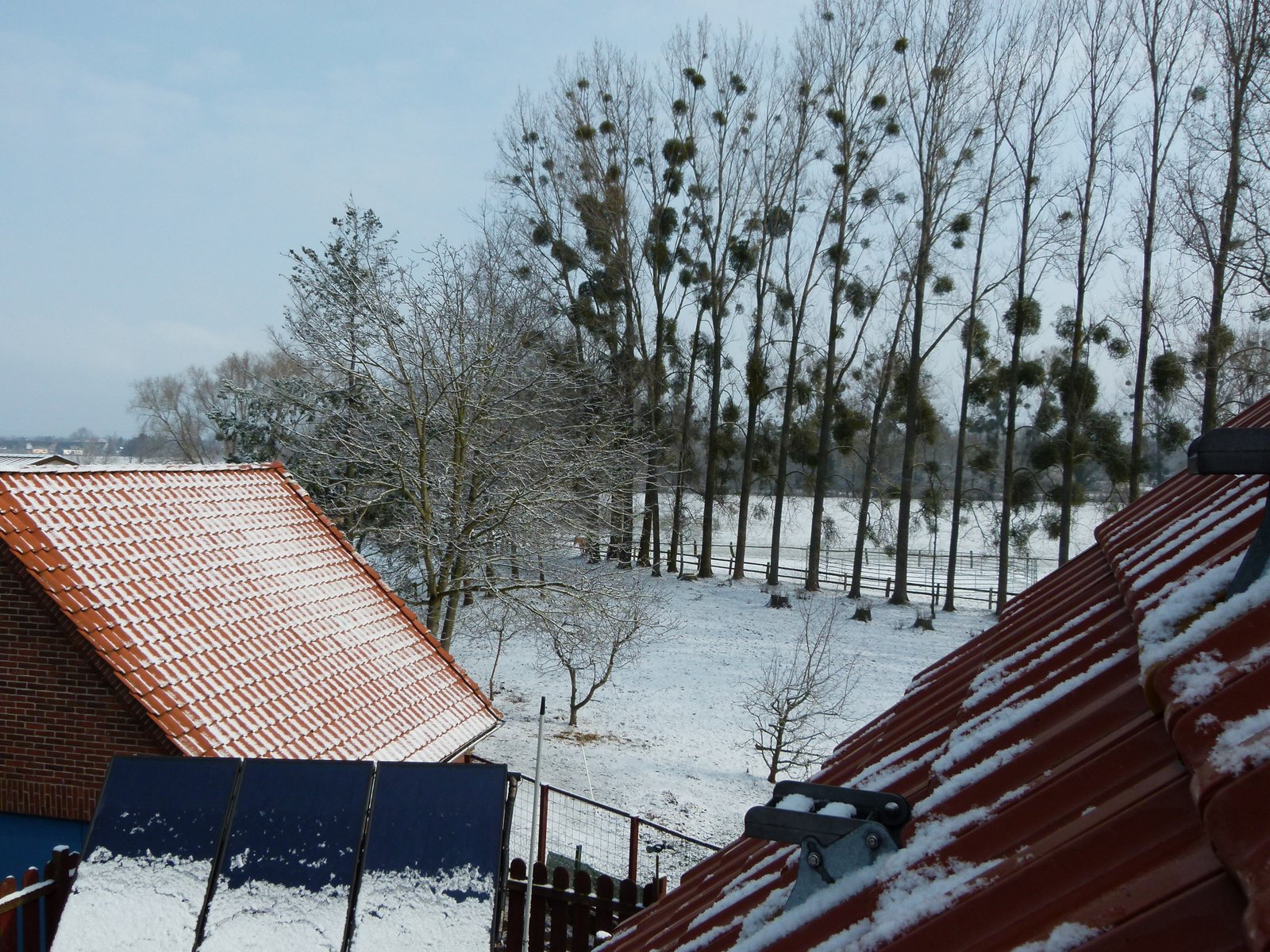Der Blick heut morgen auf Nachbars Pferdewiese und schon wieder alles weiss